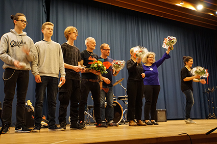 Zum Schluss wurde das Technik-Team auf die Bühne geholt, da Valentin nach vielen Jahren und Holly nach diesem Jahr das Team leider verlassen werden. Dem ganzen Team wurde gedankt, dass es bei allen Konzerten immer zuverlässig für den richtigen Sound und das richtige Equipment gesorgt hat!