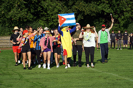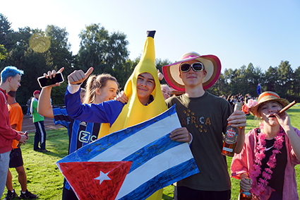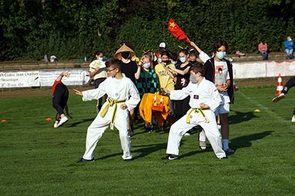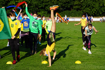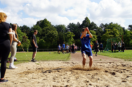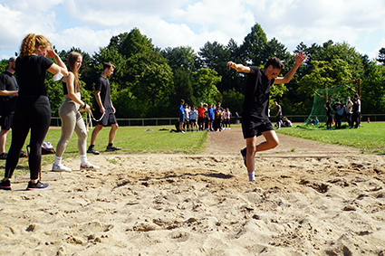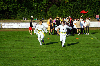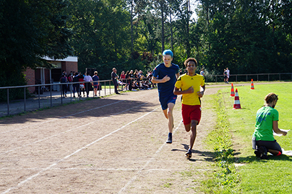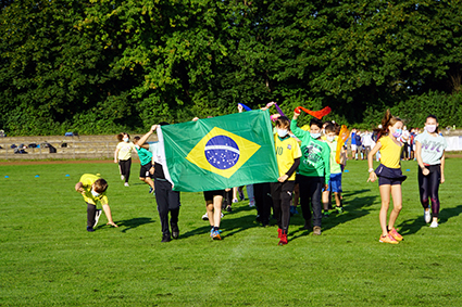 Herbeigesehnt nach sooooo langer Zeit, fand der Sport- und Spieletag bei bestem Wetter Ende August statt. Alle Klassen wechselten als Ländervertretungen in neue Rollen und präsentierten sich in bunten Verkleidungen und mit ländertypischen Accessoires. Die Wettkämpfe und Klassenturniere füllten den ganzen Vormittag aus. Die Jahrgangsstaffeln und schließlich die Schüler-gegen-Lehrer-Staffel beendeten den Tag.