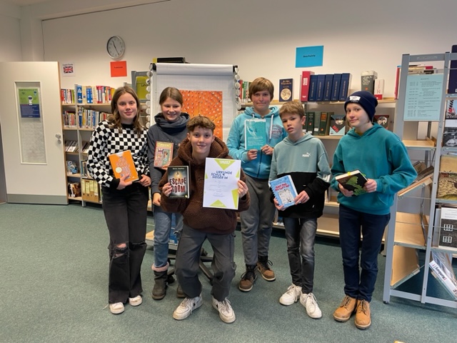 Je zwei Vorleser:innen pro Klasse wurden im Vorfeld bereits beim Klassenentscheid der 6ten Klassen ermittelt und so lasen Mara, Julian, Jari, Lykka, Lija und Lennox einen dreiminütigen Ausschnitt aus ihrem Lieblingsbuch vor. Krankheitsbedingt konnte Nikola leider nicht teilnehmen und so ergriff Lennox die Chance.