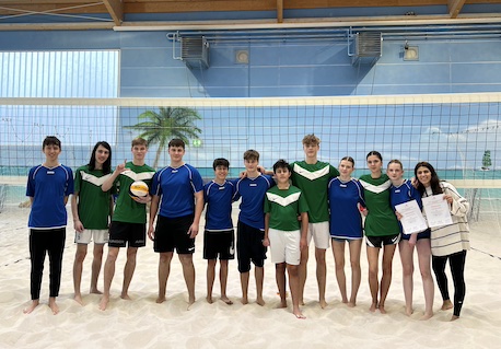 Zwei Mixed Teams des GymFi starteten am Oberstufen-Beachvolleyballturnier im Beach Center Hamburg Anfang des Jahres. Die Mannschaften setzten sich aus Schüler:innen der 10. Klasse und der Oberstufe zusammen.
