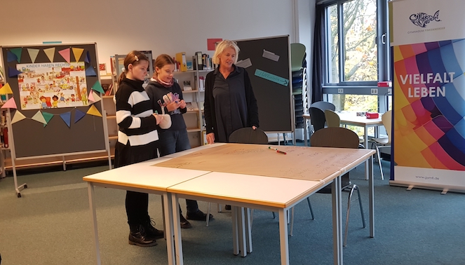 Ende November feierten wir den Geburtstag der UN-Kinderrechtskonvention, die 1989 verabschiedet wurde. Unter dem Motto „Kinderrechte leben – Demokratie stärken!“ setzten sich Kinder und Jugendliche weltweit für die Umsetzung ihrer Rechte ein. Auch unsere Schülerinnen und Schüler beteiligten sich aktiv an einer Pausenaktion, in der sie Informationen erhielten und ihre Wünsche zu ihren Rechten aufschrieben oder malten.