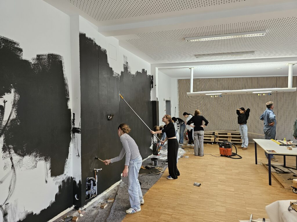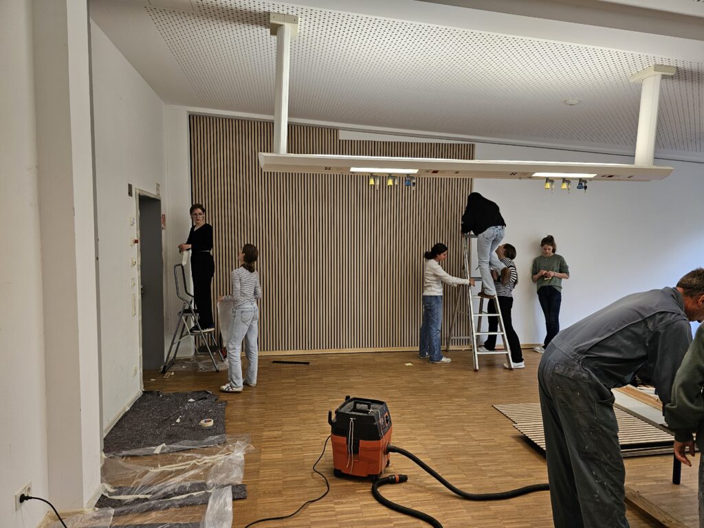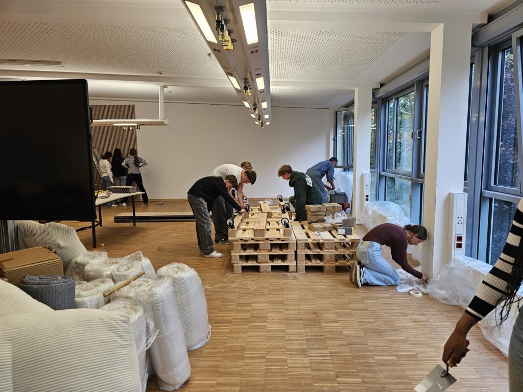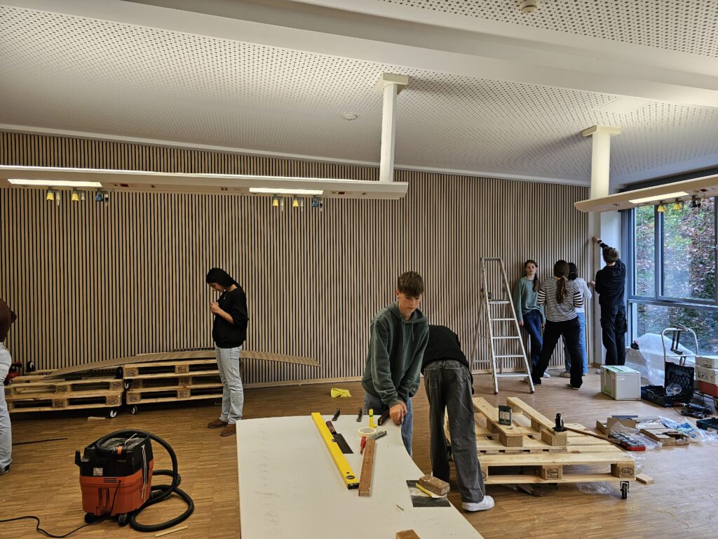 Ein ehemaliger Naturwissenschaftsraum wird zum Zukunftsprojekt: Schüler*Innen des 9. Jahrgangs haben am Gymnasium Finkenwerder begonnen, den früheren Phänomenta-Raum in ein modernes und offenes Raumkonzept für zeitgemäßes Lernen zu verwandeln. Wo früher Experimente durchgeführt wurden, wird nun gesägt, gestrichen und gebaut – und das mit viel Eigeninitiative und Teamgeist.Wände erhalten frische Farben, Holzpaneele sorgen für eine warme Atmosphäre, und aus Paletten entstehen flexible Sitzmöbel und mobile Arbeitsinseln.Das Ziel: einen Raum zu schaffen, in dem Lernen künftig selbstbestimmter, kreativer und gemeinschaftlicher gelingt. Statt Klassenraumatmosphäre entsteht ein Raum zum Denken, Ausprobieren und Gestalten – mit Zonen für Rückzug, Austausch und digitales Arbeiten. Darüber hinaus soll das Selbstlernzentrum auch ein Ort der Begegnung werden – für Lesungen, Präsentationen oder schulische Veranstaltungen wie Elternforen und Ausstellungen.Die Schüler*Innen bringen dabei nicht nur handwerkliches Geschick ein, sondern auch Teamgeist und Begeisterung für dieses Projekt. Am Ende steht kein fertiges Produkt, sondern ein Raum im Wandel: ein lebendiges Experiment, das zeigt, wie Lernen an einer modernen Schule neu gedacht werden kann.