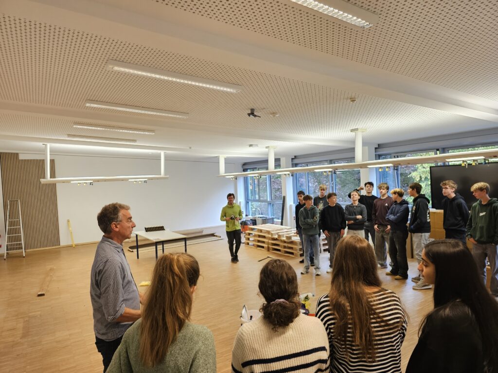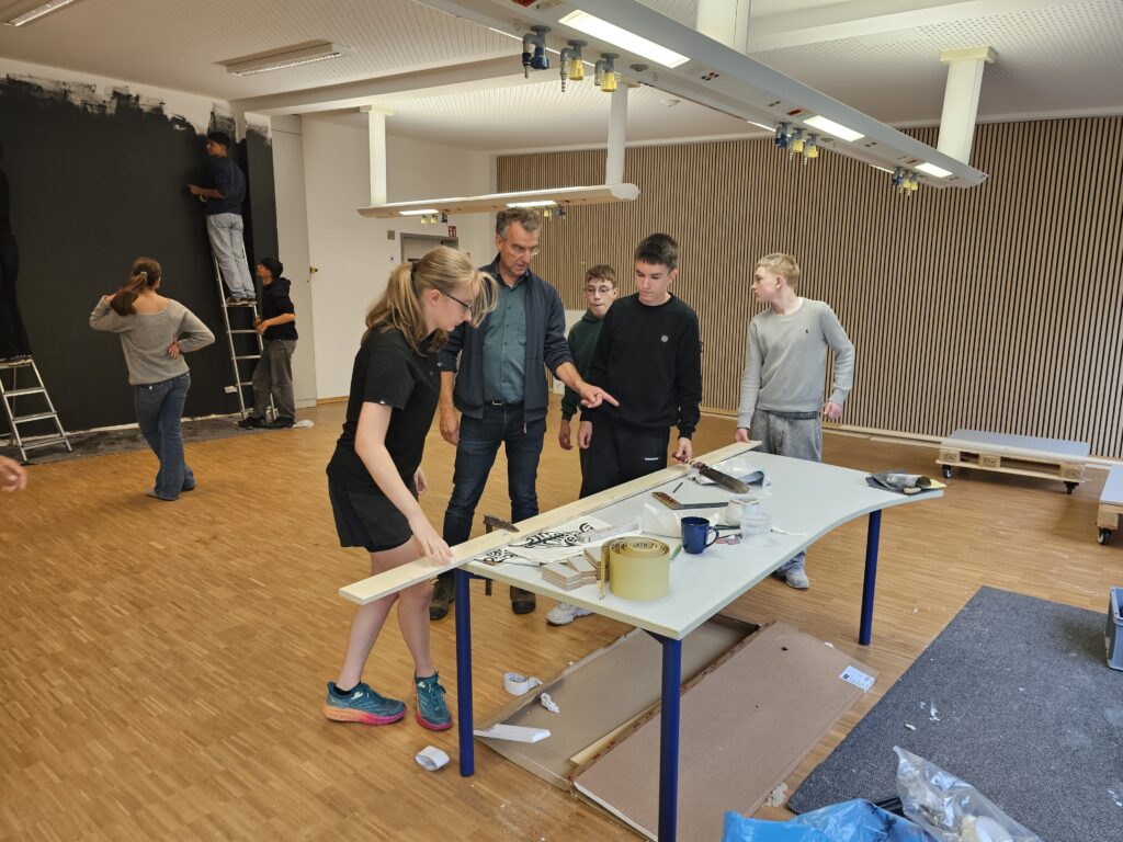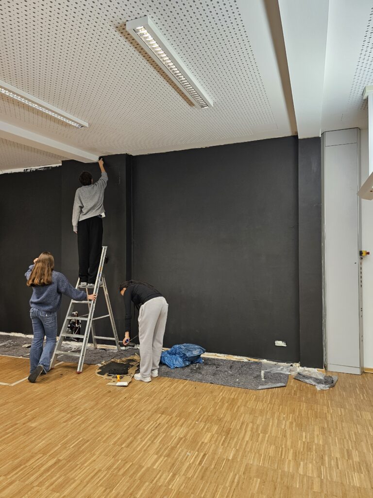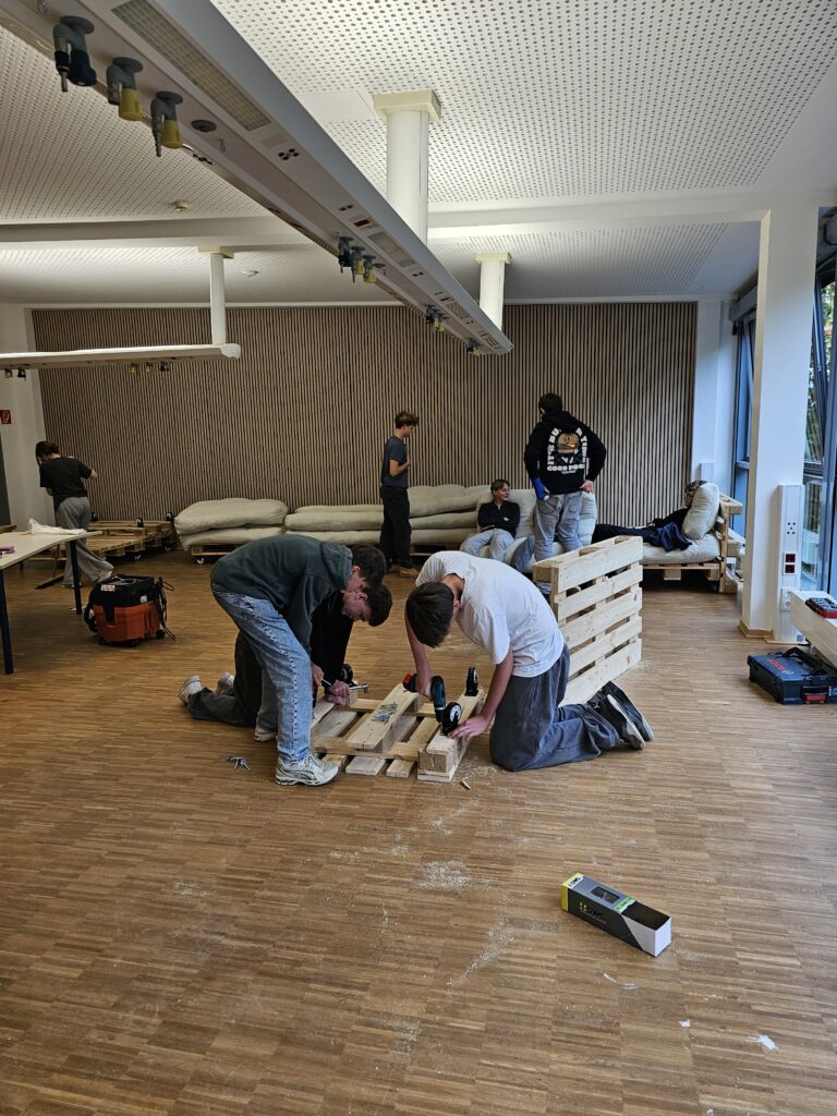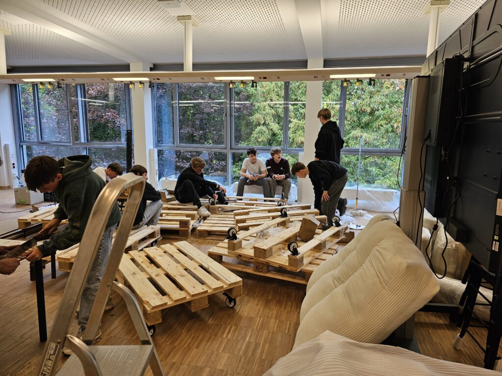 Ein ehemaliger Naturwissenschaftsraum wird zum Zukunftsprojekt: Schüler*Innen des 9. Jahrgangs haben am Gymnasium Finkenwerder begonnen, den früheren Phänomenta-Raum in ein modernes und offenes Raumkonzept für zeitgemäßes Lernen zu verwandeln. Wo früher Experimente durchgeführt wurden, wird nun gesägt, gestrichen und gebaut – und das mit viel Eigeninitiative und Teamgeist.Wände erhalten frische Farben, Holzpaneele sorgen für eine warme Atmosphäre, und aus Paletten entstehen flexible Sitzmöbel und mobile Arbeitsinseln.Das Ziel: einen Raum zu schaffen, in dem Lernen künftig selbstbestimmter, kreativer und gemeinschaftlicher gelingt. Statt Klassenraumatmosphäre entsteht ein Raum zum Denken, Ausprobieren und Gestalten – mit Zonen für Rückzug, Austausch und digitales Arbeiten. Darüber hinaus soll das Selbstlernzentrum auch ein Ort der Begegnung werden – für Lesungen, Präsentationen oder schulische Veranstaltungen wie Elternforen und Ausstellungen.Die Schüler*Innen bringen dabei nicht nur handwerkliches Geschick ein, sondern auch Teamgeist und Begeisterung für dieses Projekt. Am Ende steht kein fertiges Produkt, sondern ein Raum im Wandel: ein lebendiges Experiment, das zeigt, wie Lernen an einer modernen Schule neu gedacht werden kann.