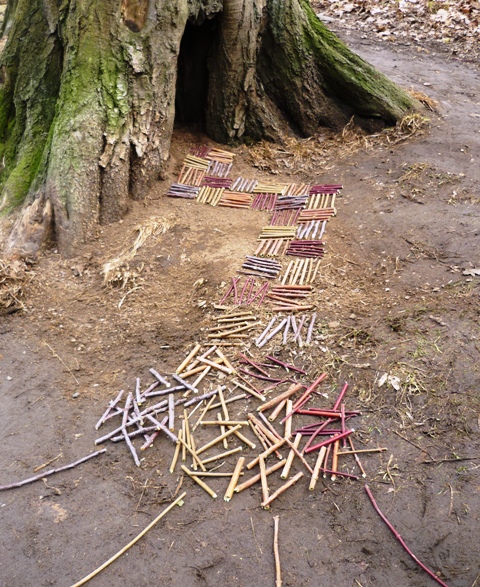 am Sonntag, den 07.04.2013, trafen sich um 11:00 Uhr 14 Oberstufen-schüler/innen an der Fähre in Teufelsbrück, um im Jenischpark künstlerisch tätig zu werden. Ausgestattet mit Materialien aus dem heimischen Garten, Werkzeug und vor allem wärmenden Handschuhen ging es ans Werk. Nach ca. 3 Stunden harter Arbeit – denn es durften nur natürliche Materialien verwendet werden, die sich nicht immer so verhielten, wie vom Künstler geplant  ;) – konnten dann in einem gemeinsamen Rundgang die unterschiedlichen Werke bewundert werden. Auch sonntägliche Parkbesucher blieben vielfach stehen, befragten die tätigen Künstler/innen und sprachen ihr Lob aus. In diesem Sinne: Gut gemacht!